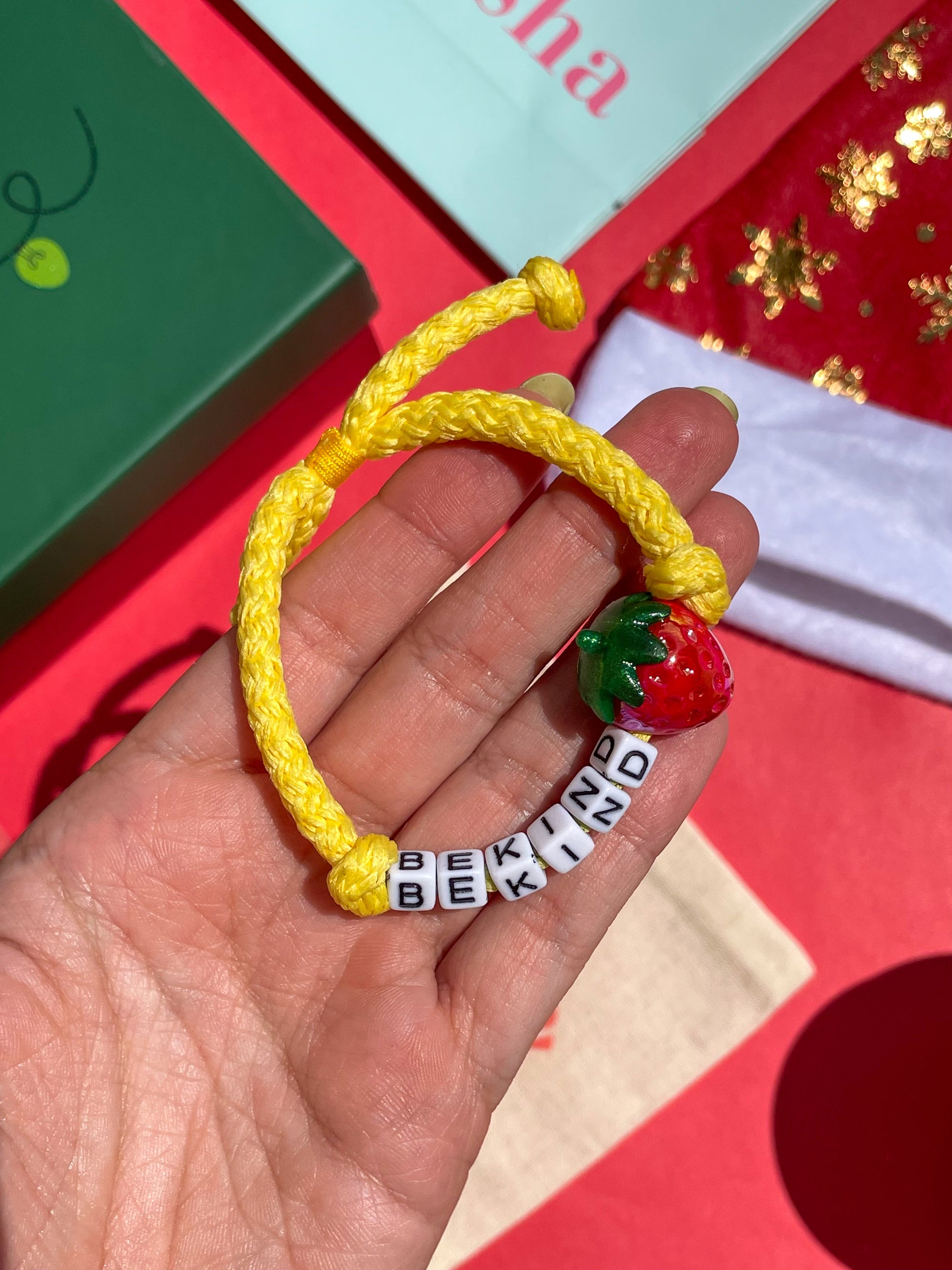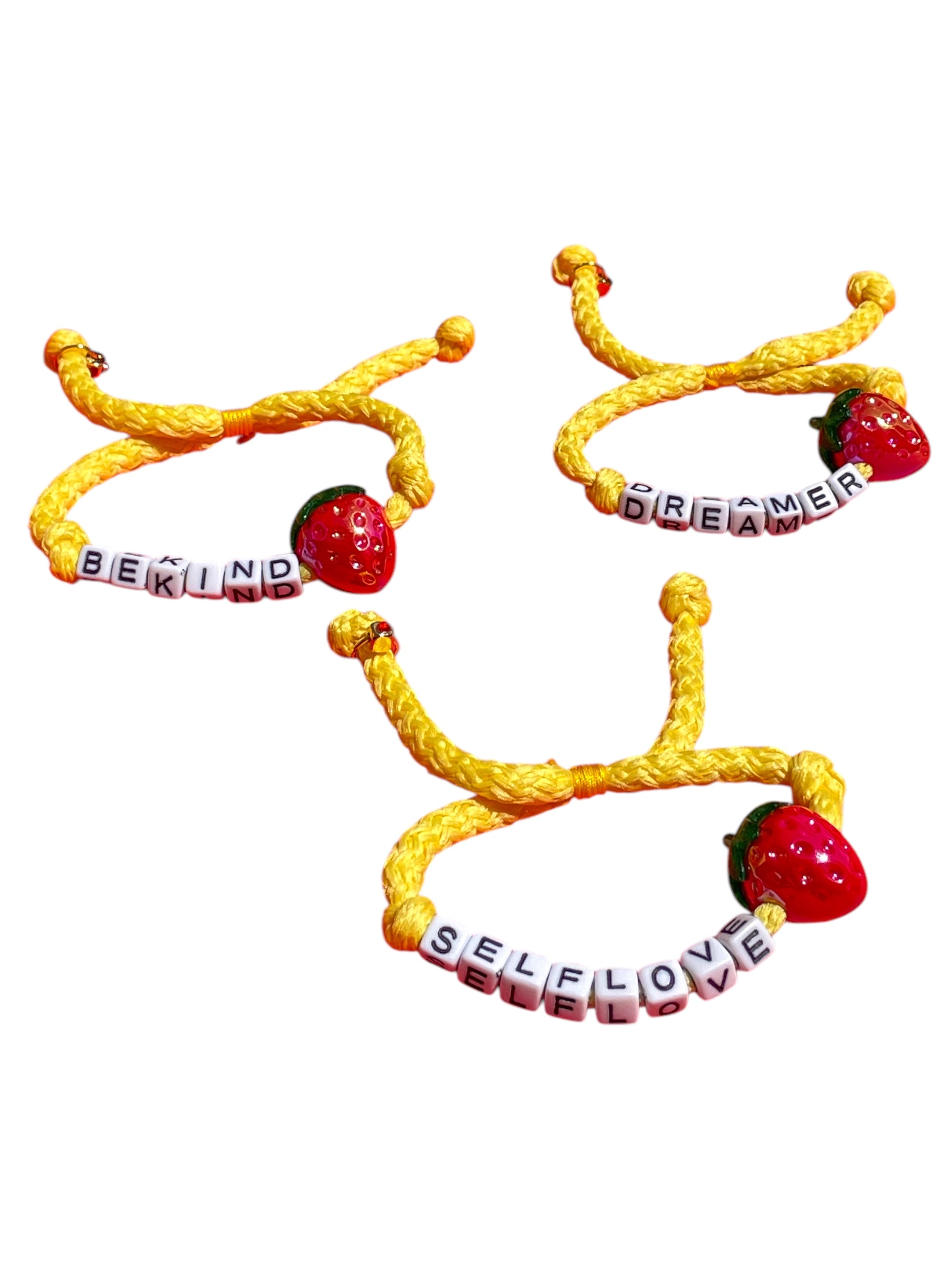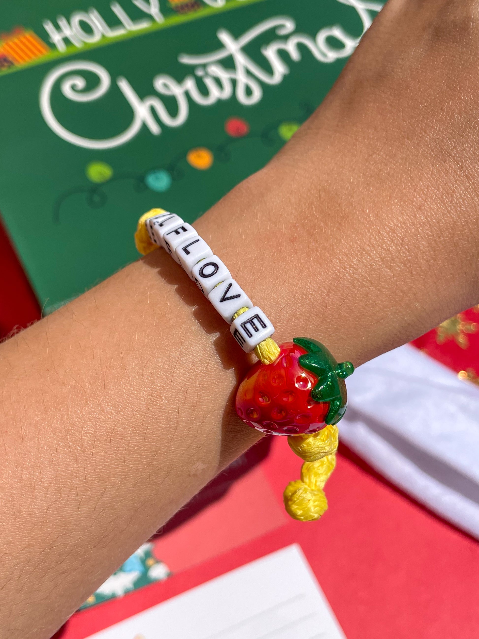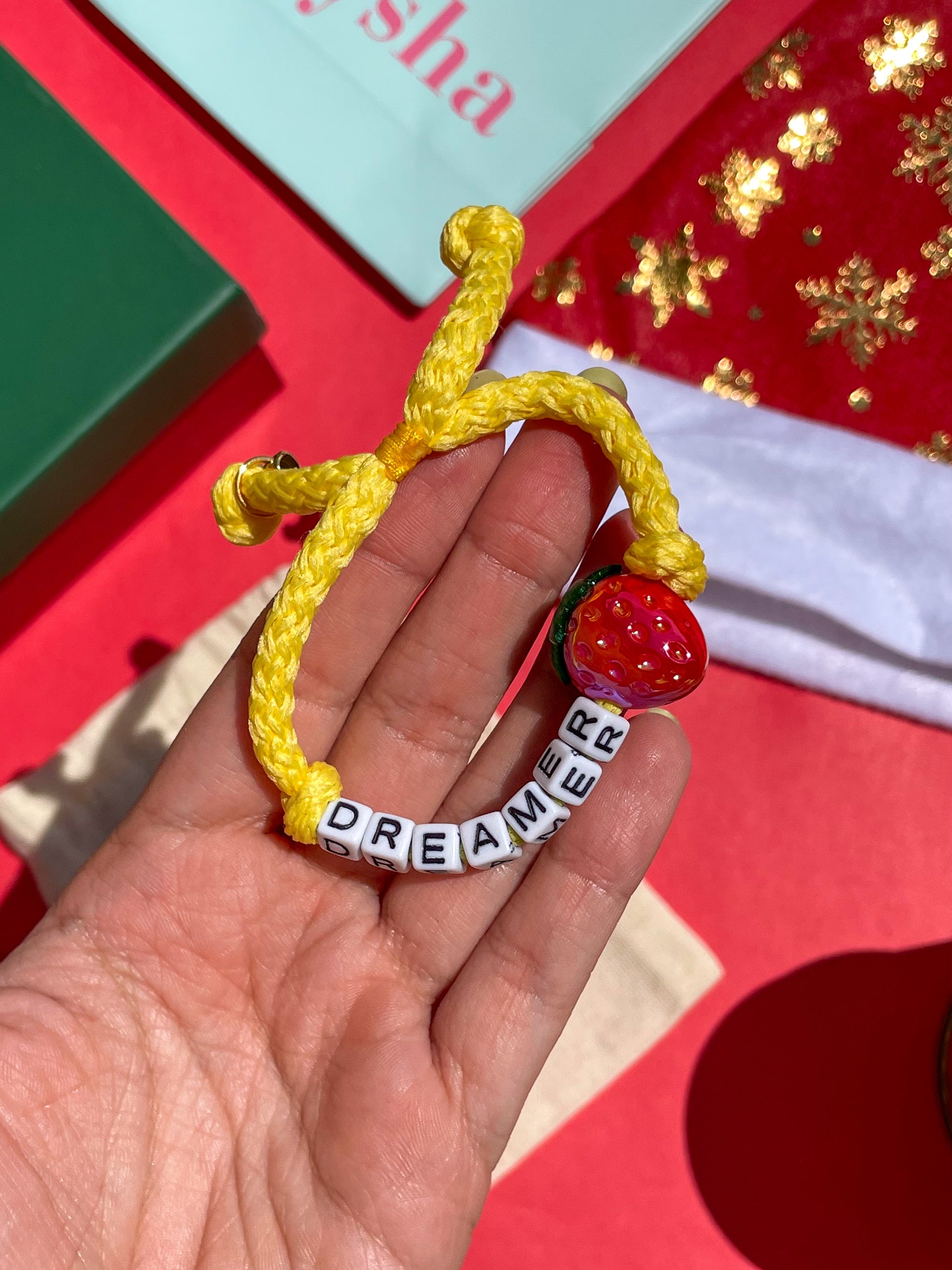 • Manilla ajustable hecha a mano con letras acrílicas.