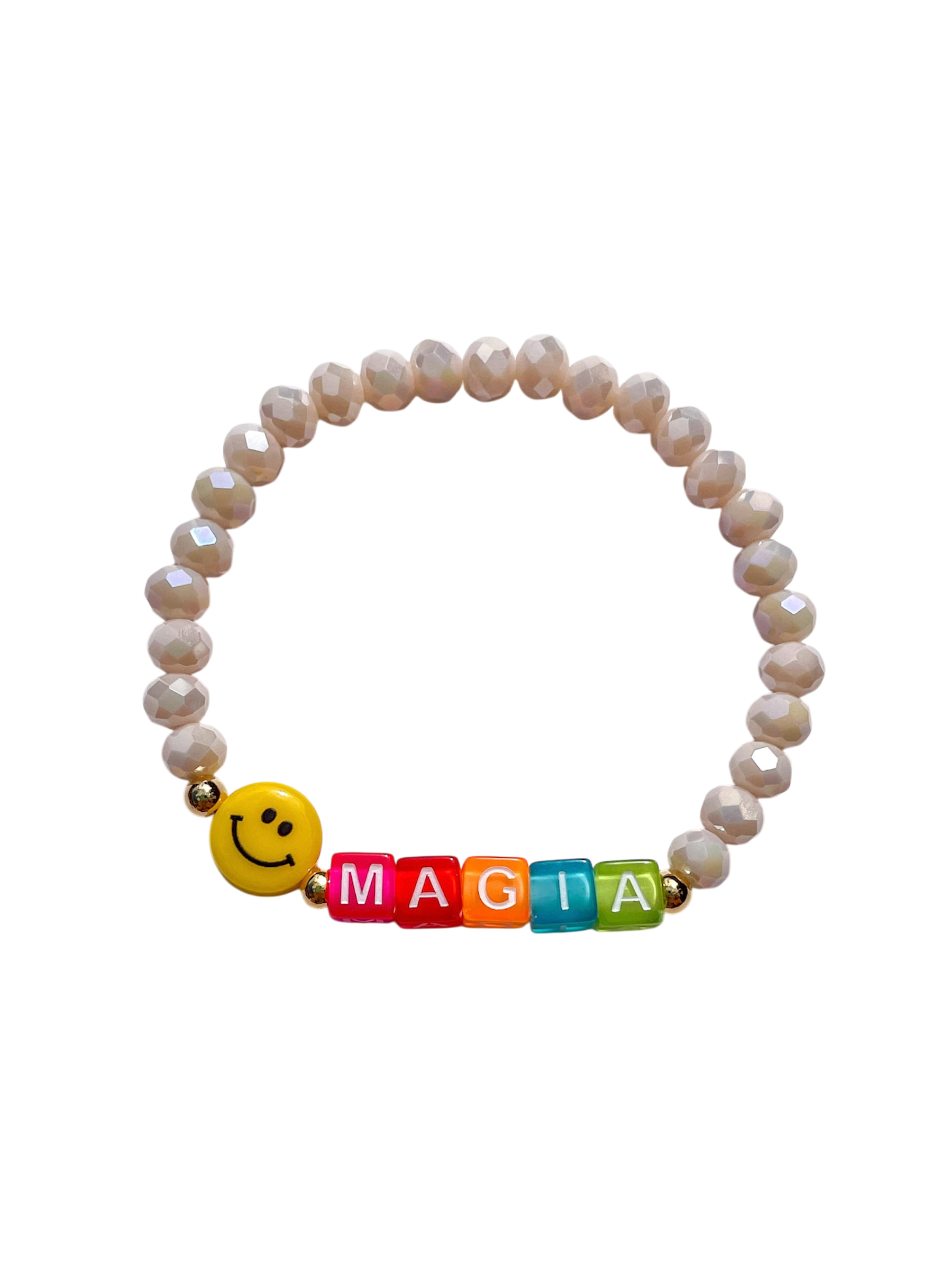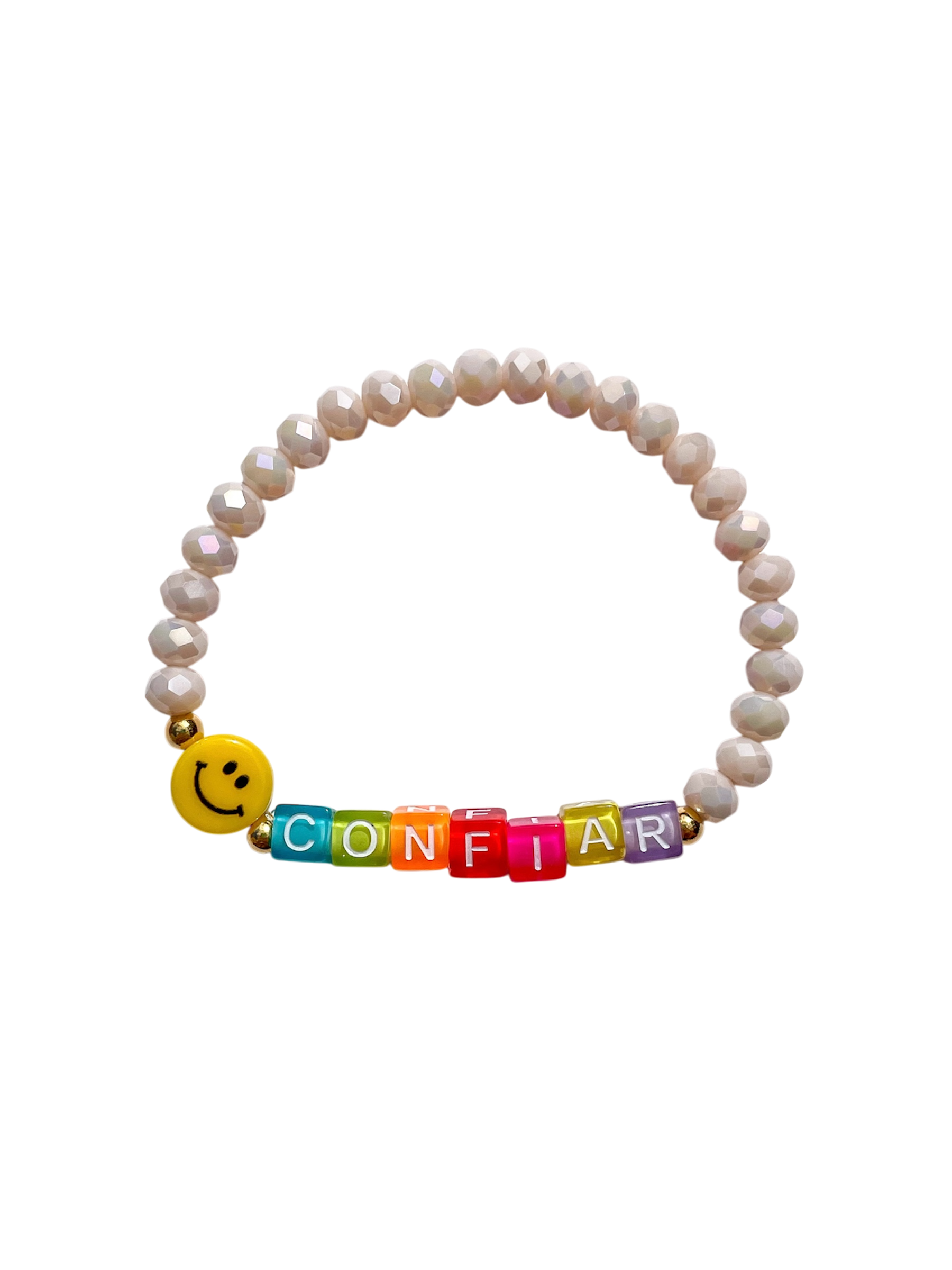 ¿Te hace sonreír? ¡Es personalizada! La manilla Smiley es divertida, alegre y muy colorida. Para ti o para regalar, llevarás una sonrisa todo el día con ella, personalízala con el nombre de alguien que quieras o una palabra que te inspire.