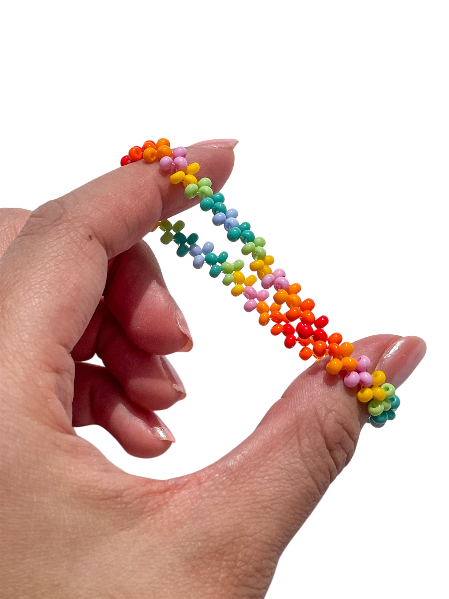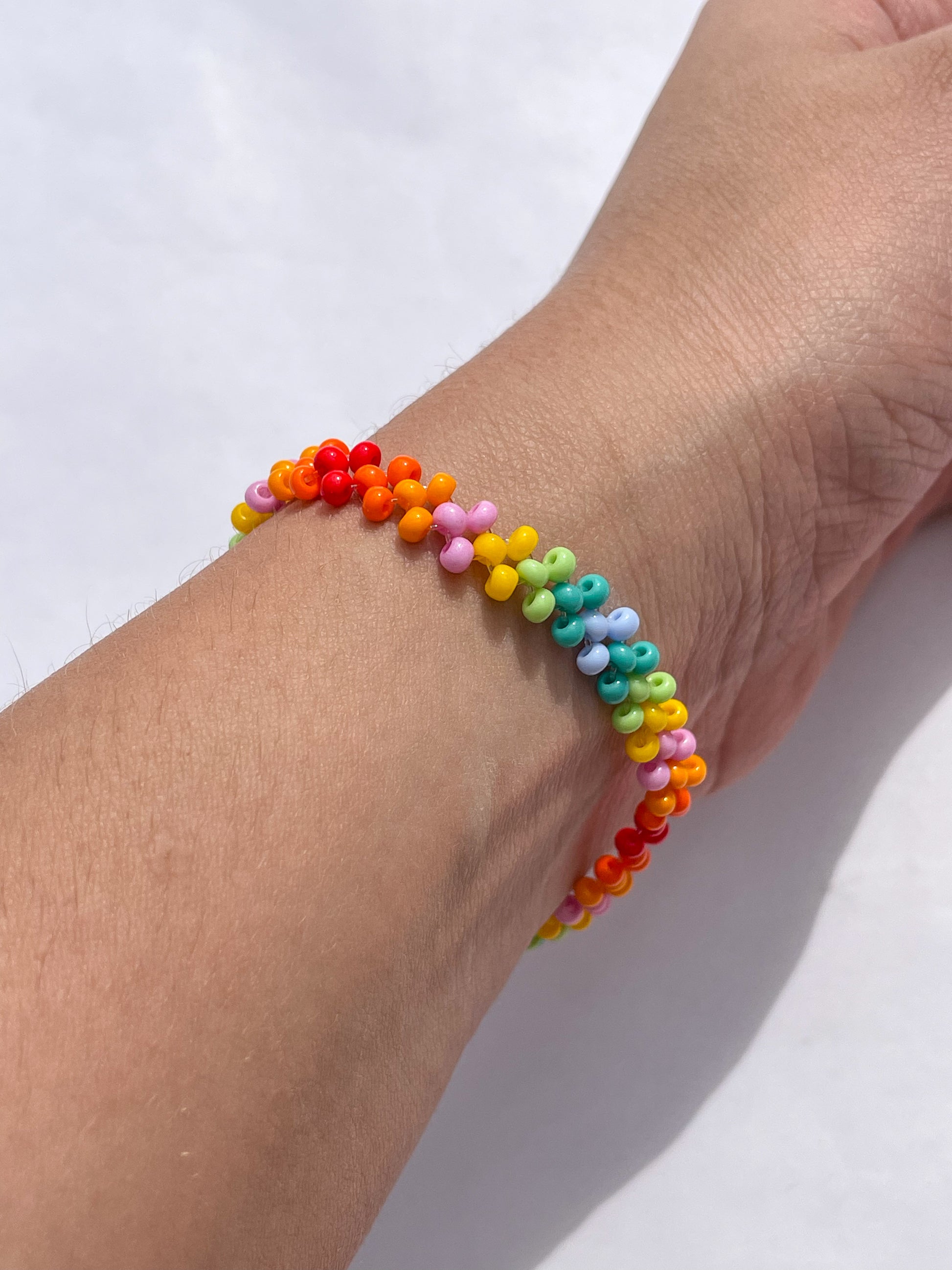 Tejida a mano con perlas y mostacillas de colores, una manilla para crear las combinaciones más lindas.
